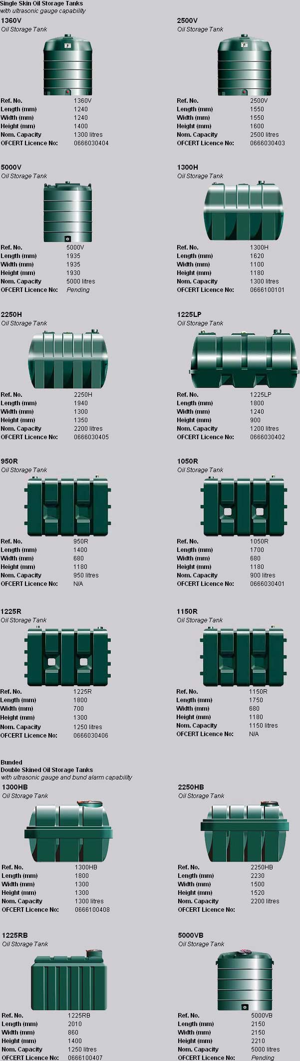 We can provide you with an excellent selection of Single or Double Skinned Oil Tanks. For more information, feel free to